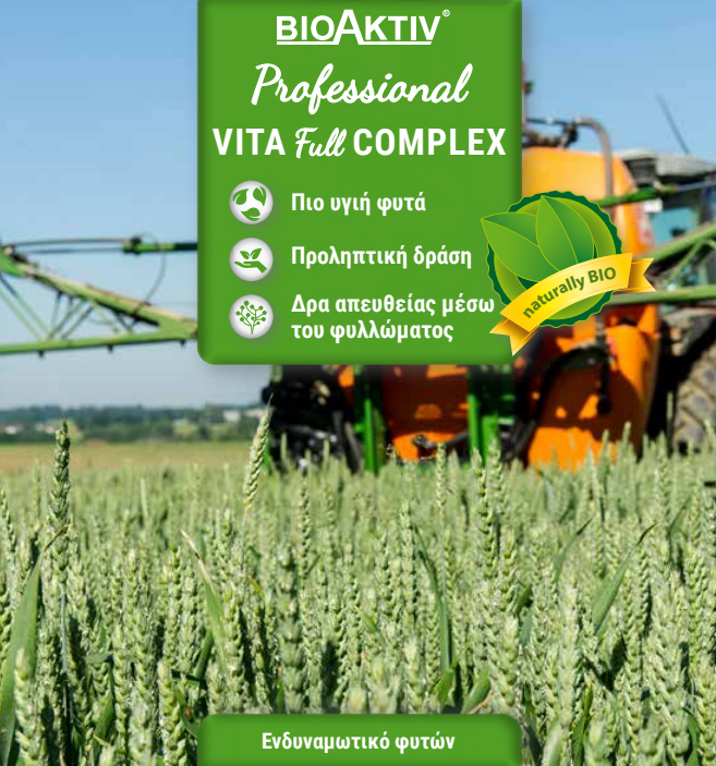 Δοσολογία Διαλύστε 1 λίτρο BioAktiv Professional Vita Full Complex ανά εκτάριο, σε περίπου 500 λίτρα